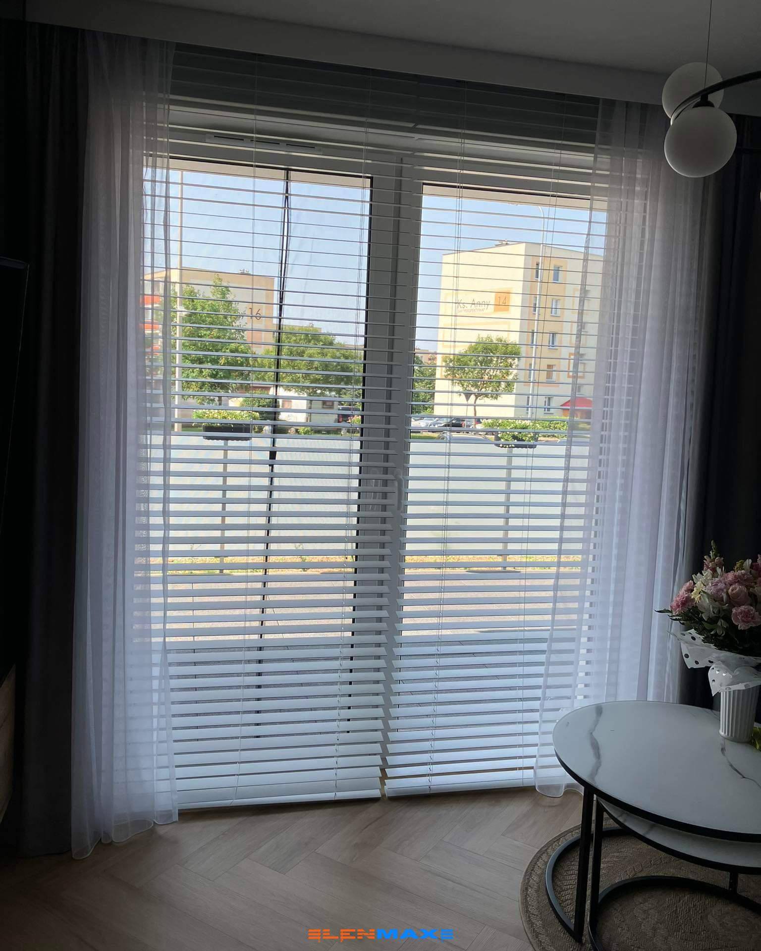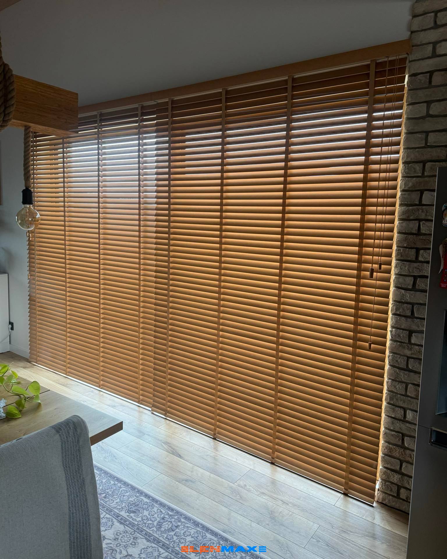 Drewniane żaluzje wprowadzają do wnętrza ciepło, elegancję i poczucie luksusu. Naturalne drewno nadaje przestrzeni wyjątkowego charakteru, podkreślając prestiż aranżacji.